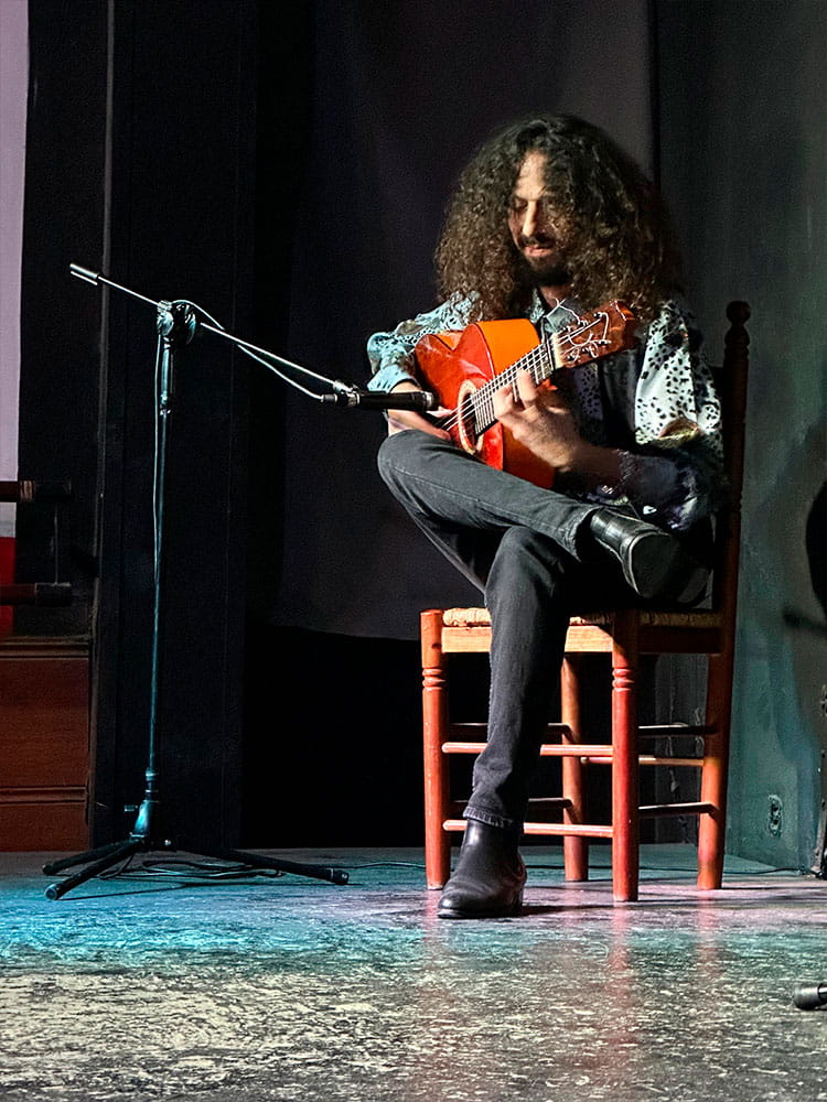 Carlos de Jacoba, natural de Motril, es un investigador apasionado de nuevos horizontes sonoros y un artista constantemente en busca de su propio Duende para trascender los límites de su arte. Su tradición, su conocimiento y su pasión por el toque gitano se mezclan con modernidad, frescura y romanticismo, resultado de las influencias de grandes maestros como Camarón y Paco de Lucía. Técnicamente, Carlos de Jacoba se caracteriza por su dominio del toque preciso y limpio, así como por una gran habilidad para crear un sonido profundo y emotivo. Su sentido del compás es impecable, lo que le permite moverse con soltura entre distintos palos flamencos, desde los más tradicionales hasta formas más modernas. Además, posee una notable capacidad de improvisación, lo que le da un estilo único y personal.
