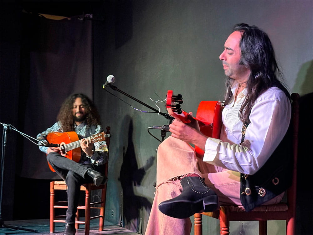 En cuanto a Joni Jiménez, sobrino nieto de Rafael Farina y primo de Diego El Cigala, proviene de una larga estirpe de guitarristas, cantaores y artistas de la tradición flamenca. Comenzó a tocar la guitarra a los 5 años bajo la tutela de su padre, Ángel Jiménez, y su abuelo, Vargas Araceli, siguiendo el estilo de la escuela de guitarra madrileña, la de Caño Roto. Su juego refleja tanto técnica como sensibilidad.